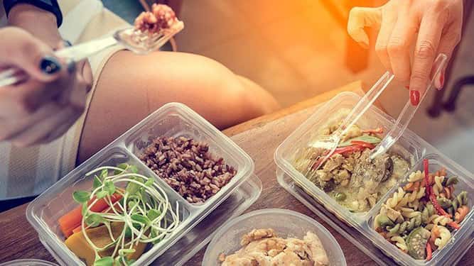 “Every Sunday I batch cook enough chicken for the week. I cut off the fat, bake it with seasoning, measure 3.5 ounces (oz), and put that much into a container with some mustard and frozen veggies, so I can grab one a day to bring to work. I also take the time to divvy up ¼ cup of rolled oats, 1 tablespoon (tbsp) natural peanut butter, 1 tbsp ground flax, and a pinch each of protein powder and cinnamon to sweeten in individual containers. So when I’m a zombie in the morning, all I need to do is add water and microwave!” — Kyra Williams, a personal trainer in Boston